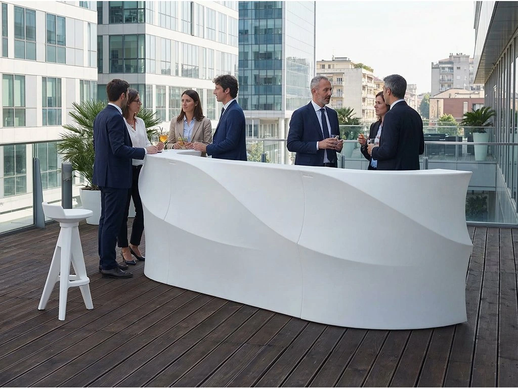 Barová zostava BARAONDA od MYYOUR je ikonický dizajnový prvok, ktorý premení každú terasu, záhradu či eventový priestor na štýlový bar. Inšpiráciou pre jej tvar je elegantná vlna, ktorá vytvára dynamický a moderný barový pult s výrazným charakterom.