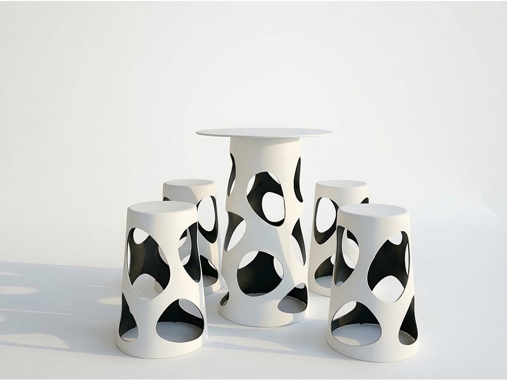 Barová súprava LIBERTY od MYYOUR prináša originálny taliansky dizajn, ktorý spája hravosť, funkčnosť a odolnosť. Súpravu tvorí barový stôl a štyri barové stoličky, ktoré spolu vytvárajú štýlové miesto na stretnutia s priateľmi, letné večery na terase alebo oddych pri bazéne.