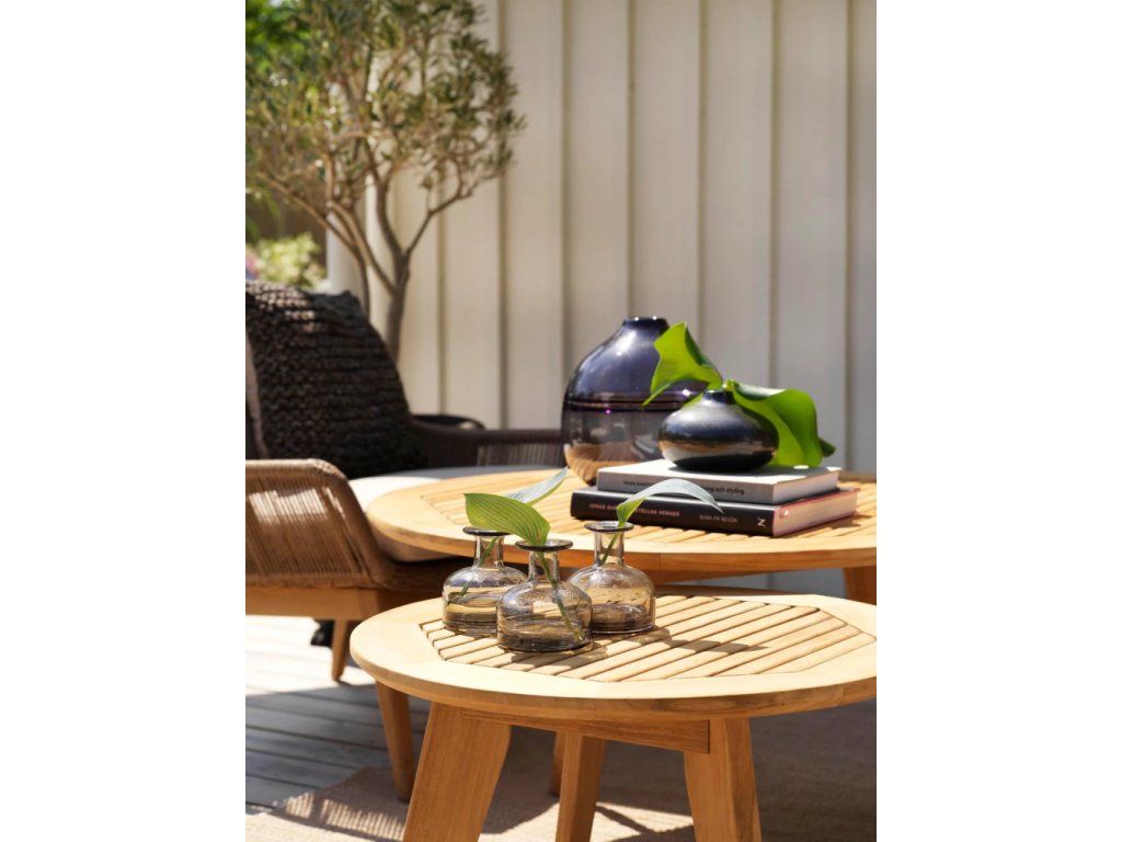 - Odolnosť: Teakové drevo je známe svojou odolnosťou voči poveternostným podmienkam, čo zaisťuje, že stolík zostane krásny po dlhé roky.