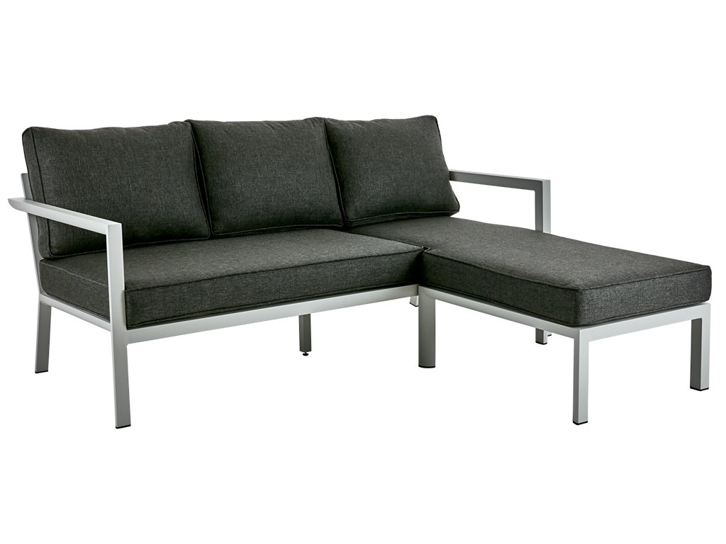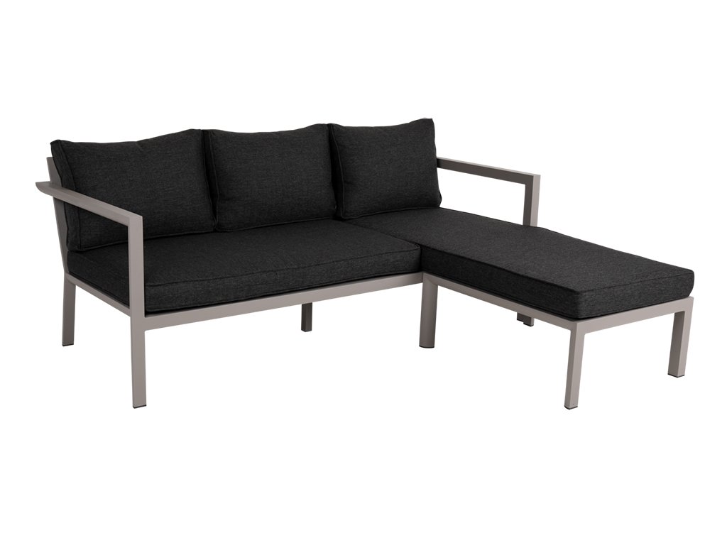 Sedačka Delia kombinuje odolný hliníkový rám s kvalitným textilným poťahom z materiálu Olefine – ideálnym pre outdoor prostredie, ktorý je odolný voči poveternostným vplyvom, UV žiareniu a zároveň poskytuje príjemnú oporu pri sedení.