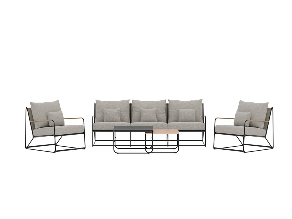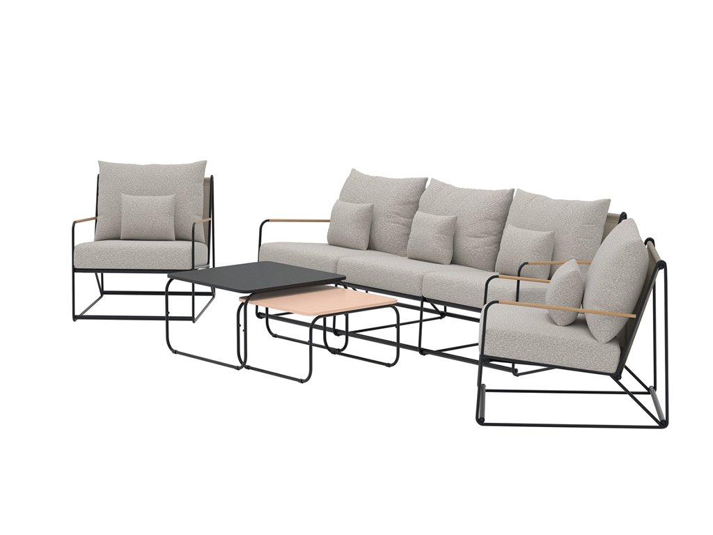 Súprava Pallazo poskytuje priestranné sedadlá a ergonomicky tvarované operadlá, vhodné na dlhé hodiny relaxu. Minimalistický škandinávsky dizajn sa ľahko kombinuje s ostatným exteriérovým nábytkom a vytvára harmonickú lounge zónu.