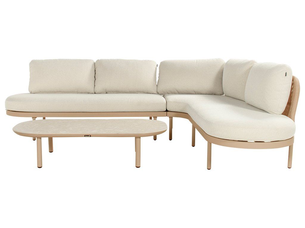 Sedačka BILBAO zaujme elegantným prevedením v cappuccino farbe rámu, doplneným o béžové polstre z polyesteru so silikónovou úpravou, ktoré sú príjemné na dotyk, odolné a ľahko sa udržiavajú. Pevný hliníkový rám v kombinácii so syntetickým výpletom -Rope zabezpečuje dlhú životnosť a odolnosť voči počasiu.