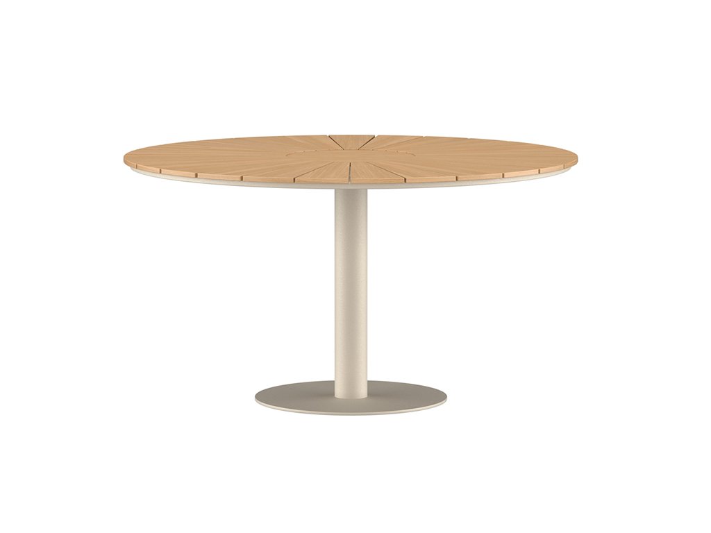 Priemer 120 cm poskytuje dostatok priestoru pre pohodlné stolovanie 4–6 osôb a zároveň zachováva príjemný a kompaktný tvar vhodný aj do menších jedální či terás.