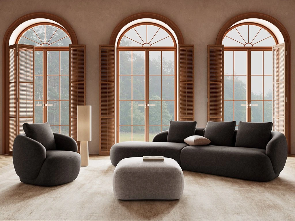 TORINO je charakteristické organickými a jemne zaoblenými líniami, ktoré pôsobia vizuálne ľahko a harmonicky. Elegantné čalúnenie a prepracované detaily dopĺňajú minimalistický dizajn, ktorý sa ľahko kombinuje so súčasnými interiérovými trendmi – od škandinávskeho po moderný loft štýl.