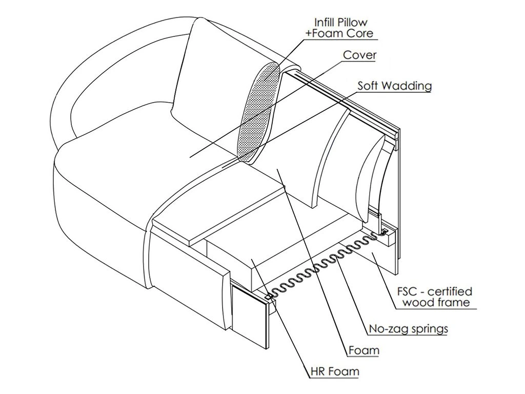 vrstvené textúry a materiály pre komfortné sedenie. flexlux.com
