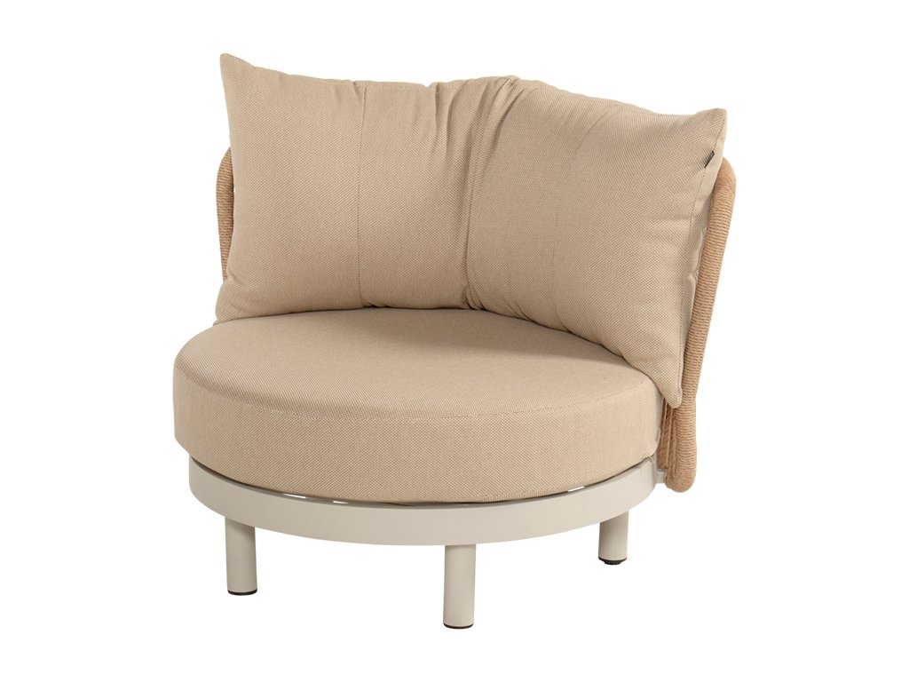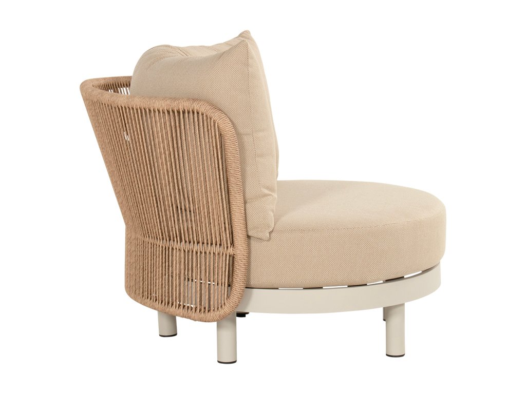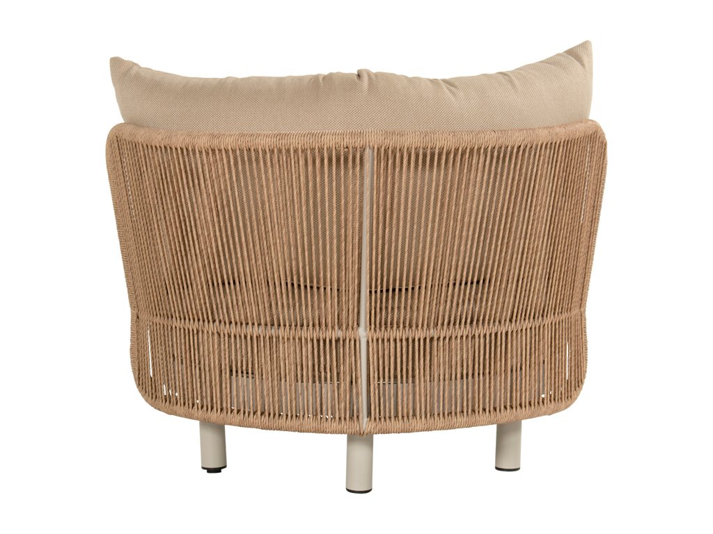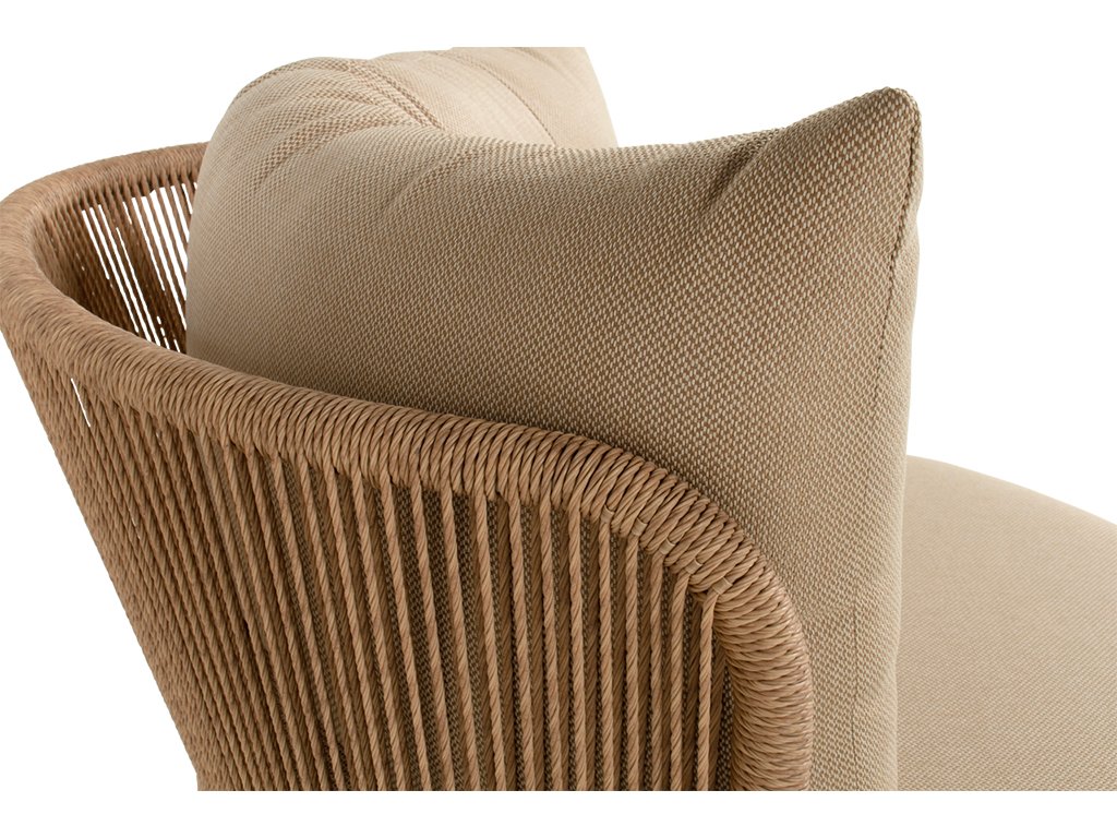 Kreslo je vyrobené s pevnou hliníkovou konštrukciou potiahnutou rope výpletom, ktorý kombinuje ľahkosť a stabilitu s odolnosťou voči vonkajším vplyvom. Outdoorové sedáky sú doplnené pohodlnými vankúšmi, ktoré ponúkajú maximálne pohodlie pri sedení a relaxe.
