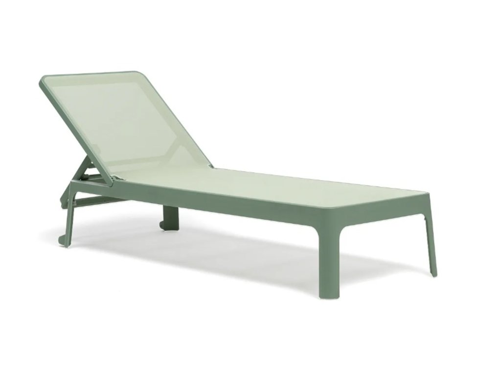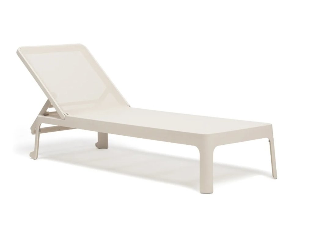Plano je vyrobené z vysoko kvalitných materiálov a vyznačuje sa lineárnou, jednotnou štruktúrou zo sklolaminátovej živice s extrudovanými hliníkovými tyčami umiestnenými pod rámom, ktoré zaisťujú stabilitu, robustnosť a odolnosť ležadla. Konštrukcia je čalúnená priedušným technickým plátnom dostupným v širokej škále zladených farieb. Integrované kolieska dodávajú ľahkosť a robia Jednoduchá manipulácia.