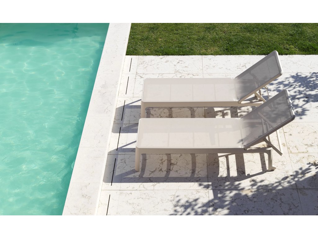 Plano je ležadlo zo sklolaminátovej živice s čistými, prísnymi líniami a veľkorysou plochou, ktoré nanovo definuje koncept pohodlia pri bazéne.