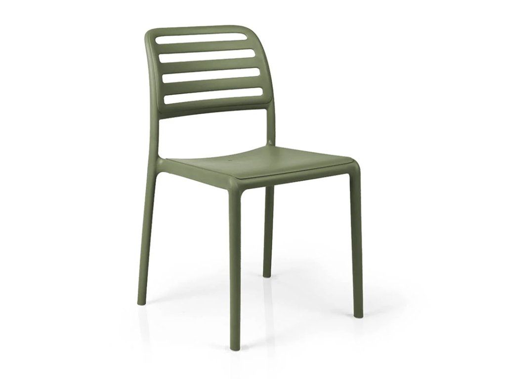 Stolička Costa Bistrot nadväzuje na tradičný taliansky dizajn s jednoduchými líniami a perforovaným operadlom, ktoré pripomína prirodzené drevené latovanie, no zachováva modernú, minimalistickú estetiku.