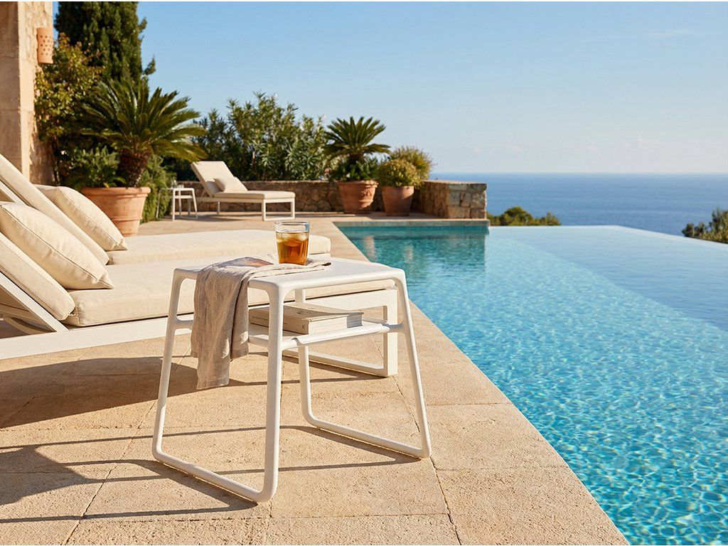 Záhradný príručný stolík od talianskeho výrobcu Nardi je dokonalým spojením praktickosti a elegantného dizajnu. Vďaka svojej čistej bielej farbe pôsobí sviežo a moderne, takže krásne doplní ležadlá pri bazéne, terasu aj záhradný lounge priestor.