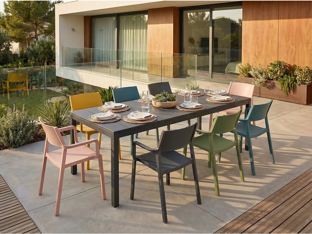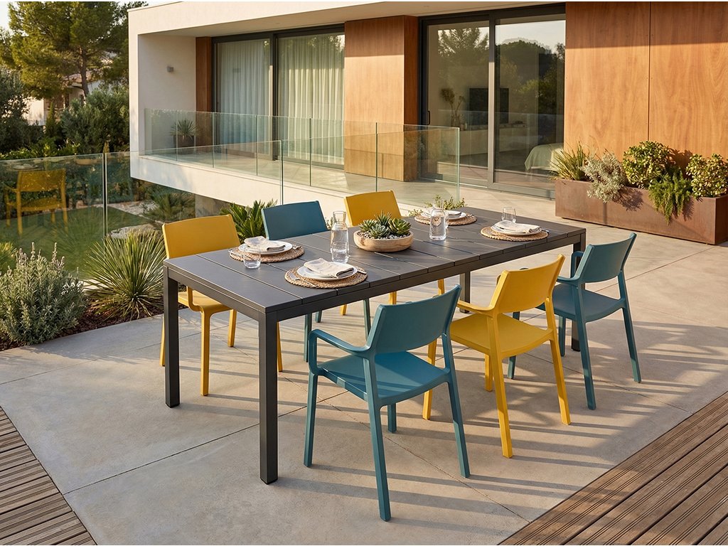 Rozťahovací stôl Rio 140‑210 prináša taliansky dizajn, univerzálnosť a dlhú životnosť pre vaše vonkajšie jedálne aj spoločenské priestory.