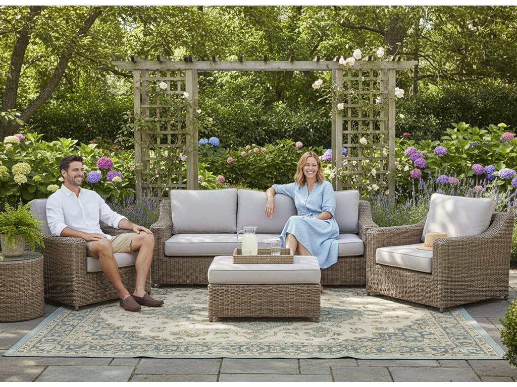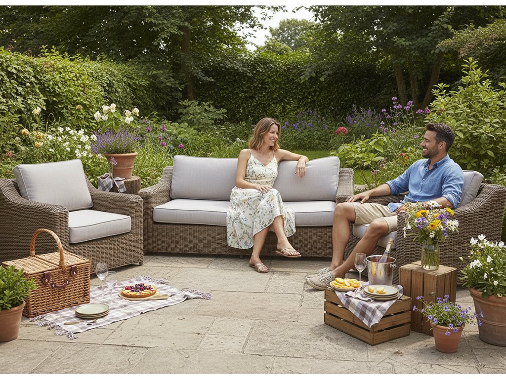 výplet zo syntetického ratanu v rustikálnom vzhľade – pôsobí prirodzene, je však odolný voči poveternostným vplyvom