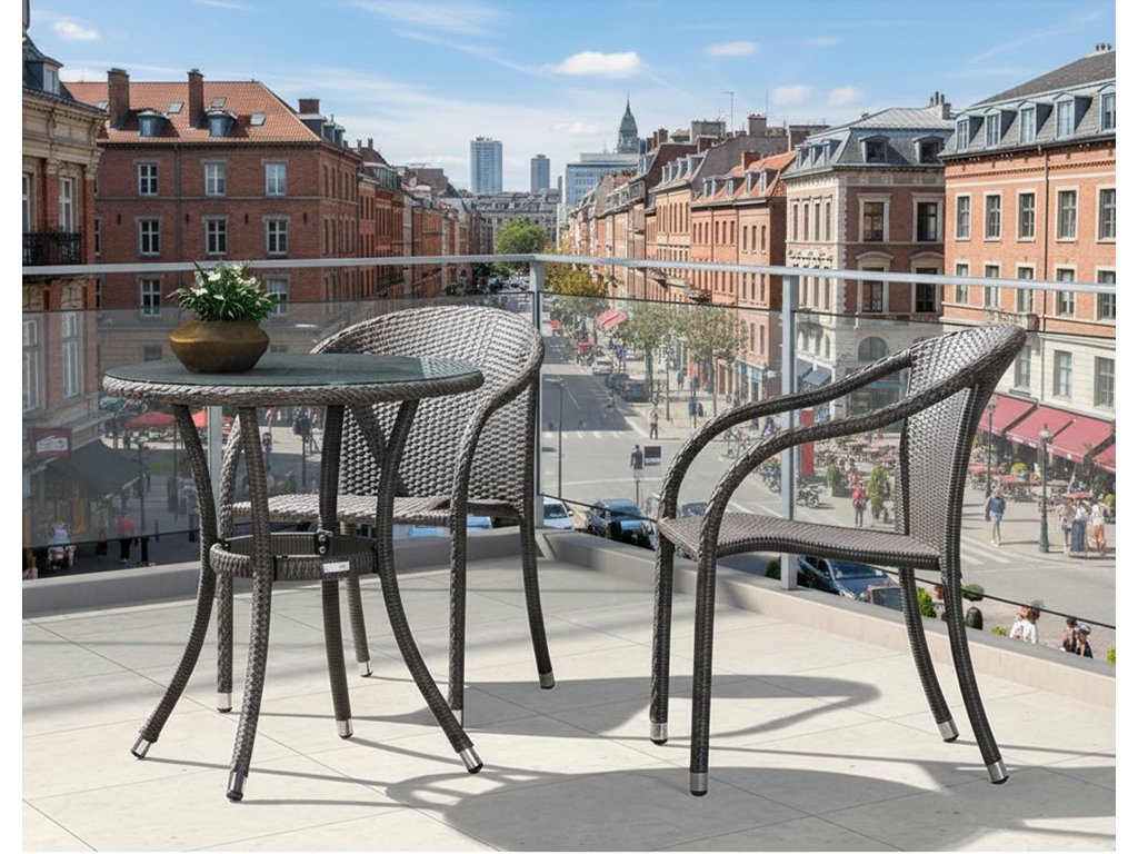 Stolička je vyrobená z trvácneho plochého umelého ratanu, ktorý odoláva UV žiareniu, dažďu aj zmenám teplôt.
