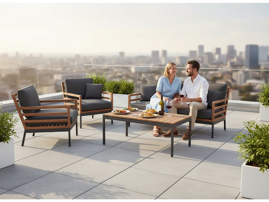 Kompletné záhradné sedenie pripravené na okamžité použitie.
