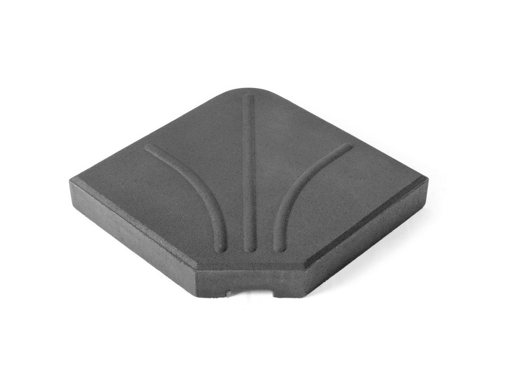 Hmotnosť: 25 kg – dostatočná pre stabilné uchytenie väčšiny voľne stojacich slnečníkov s kryžovou základňou (cross base).