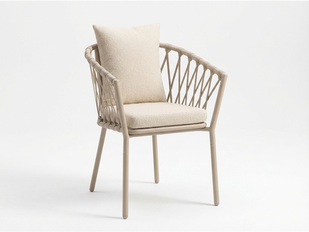 Stolička LINOS je navrhnutá pre príjemné sedenie pri jedálenskom stole – široké sedadlá s mäkkým bouclé poťahom poskytujú pohodlie aj pri dlhších rodinných večeriach alebo spoločenských stretnutiach. Elegantné béžovo‑biele farebné prevedenie dodáva priestoru ľahkosť a eleganciu.