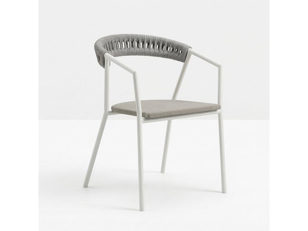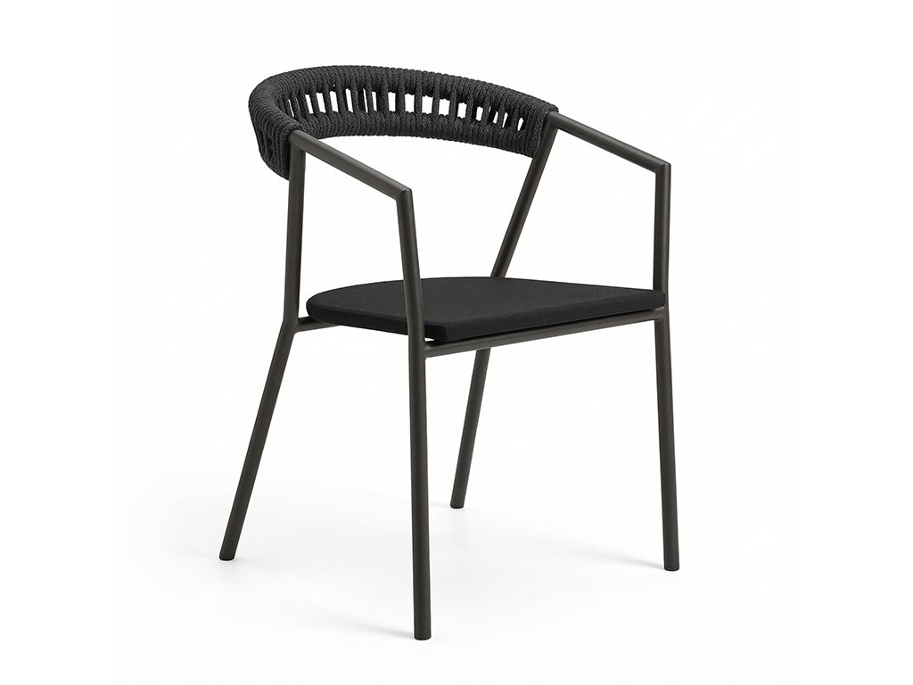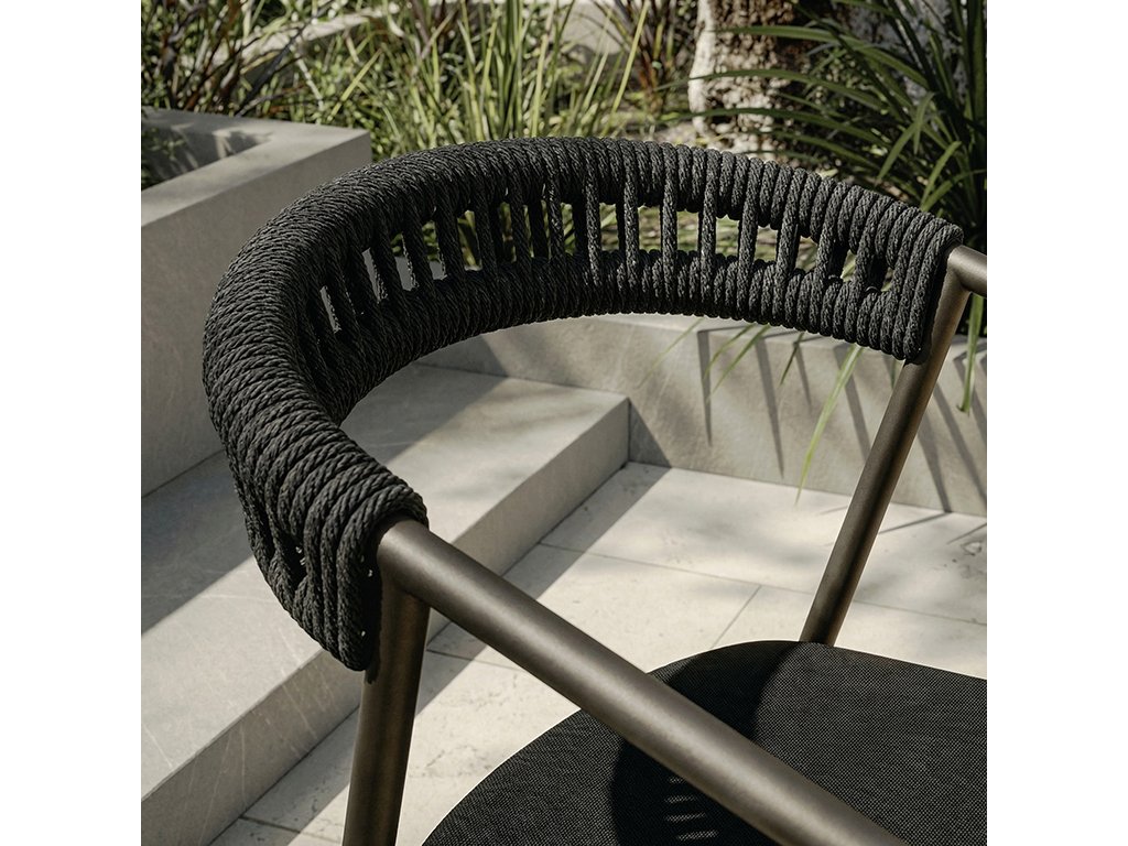 Stolička je vyrobená z pevnej hliníkovej konštrukcie s práškovou povrchovou úpravou, ktorá zabezpečuje vysokú odolnosť voči poveternostným vplyvom. Sedák z textilene poskytuje pohodlné sedenie aj počas horúcich dní a opletené operadlo zo syntetického lana dodáva stoličke jedinečný dizajnový charakter a zároveň podporuje komfort pri sedení.