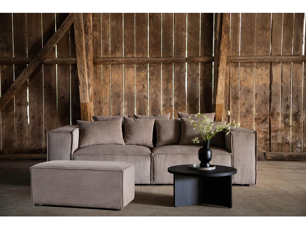 Puff je potiahnutý prémiovým bouclé či manchester textilom v trendovej farebnej palete (napr. hnedá či čierna), ktorý pôsobí sofistikovane a útulne. Jeho čisté línie a minimalistický štýl sú typické pre škandinávsky dizajn, ktorý sa ľahko kombinuje s rôznymi typmi interiérov.
