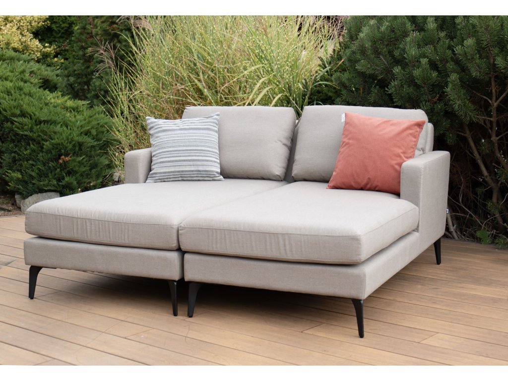 Záhradná dvojmiestna pohovka Noah od Hartmanu sa vyznačuje vysoko pevným hliníkovým rámom. Ten je osadený pohodlným polstrovaním v kombinácii rýchlo schnúcej náplne a vrchnej, takmer bezúdržbovej látky Sunbrella®. Vďaka tomu môžete túto pohovku vždy bez obáv nechať vonku za každého počasia. Nie je potrebné ju pravidelne zakrývať a chrániť proti dlhodobému pôsobeniu slnečného žiarenia alebo častému dažďu. Priedušná tkanina zabráni rastu plesní a zároveň si dlhodobo udržuje svoju farbu aj na prudkom slnku.