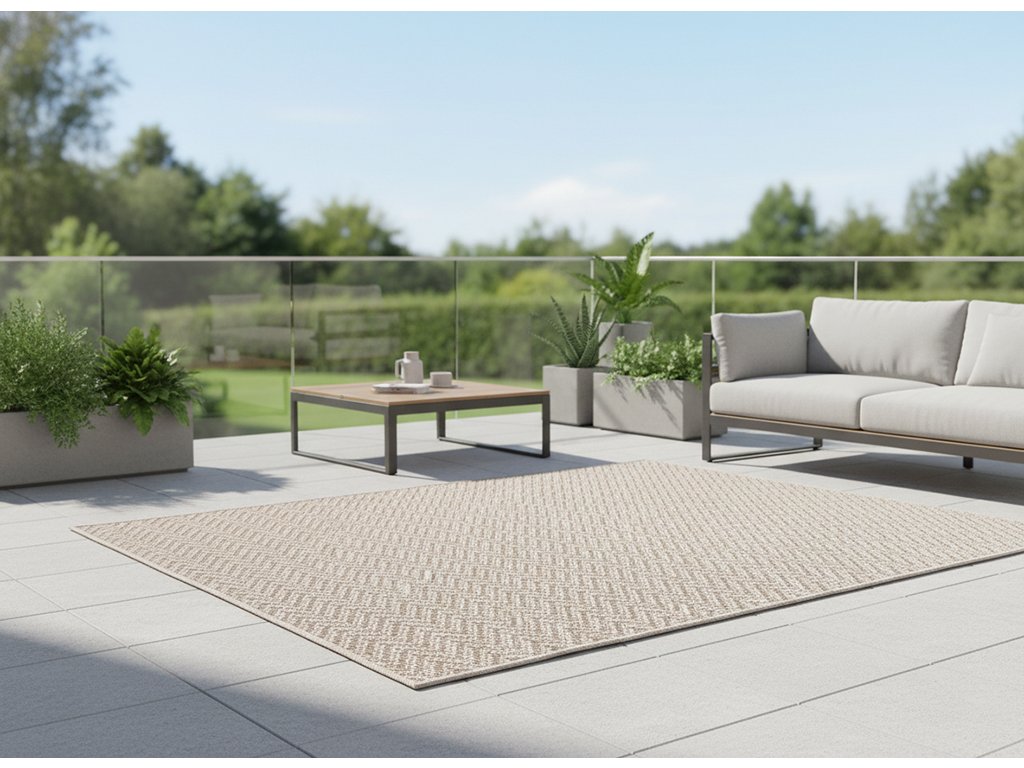 Decentný odtieň taupe pôsobí prirodzene, moderne a ľahko sa kombinuje s rôznymi štýlmi záhradného nábytku – od hliníkových a ratanových zostáv až po drevené lounge sety. Koberec krásne zjemní priestor a dodá mu harmonický vzhľad.