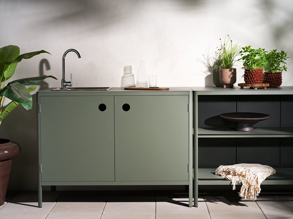 Kelia Outdoor Kitchen ponúka dostatočne veľkú pracovnú plochu, ktorá uľahčuje prípravu, varenie a servírovanie jedál vonku. Za dvierkami sa nachádza úložný priestor — praktický pre náradie, príslušenstvo, riad alebo ingrediencie, vďaka čomu sú veci chránené a vždy po ruke.