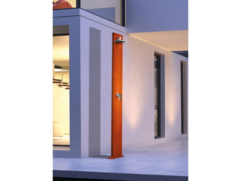 - Materiál a ochrana: Vyrobená z odolného hliníka, ktorý zaisťuje dlhú životnosť a vysokú odolnosť voči poveternostným vplyvom. Hliník je ľahký, ale pevný materiál, ktorý je tiež odolný voči korózii, čo zaručuje, že sprcha si zachová svoj pôvodný vzhľad aj po dlhodobom vystavení slnečnému žiareniu.