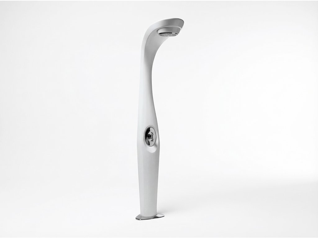 Záhradná sprcha DYNO od MYYOUR prináša dokonalé osvieženie počas horúcich letných dní a zároveň sa stáva výrazným dizajnovým prvkom pri bazéne, na terase alebo v záhrade. Jej elegantné, ergonomicky tvarované línie navrhlo talianske štúdio MoreDesign, ktoré spojilo moderný vzhľad s praktickou funkčnosťou.