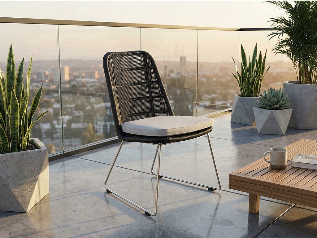 Jedálenská stolička Margate kombinuje elegantný dizajn s vysokým komfortom a trvácnymi materiálmi, aby ste si mohli naplno užívať vonkajšie stolovanie. Štýlové prevedenie v antracitovo‑šedej farbe a robustná konštrukcia z nej robia ideálny doplnok pre terasu, záhradu či balkón.