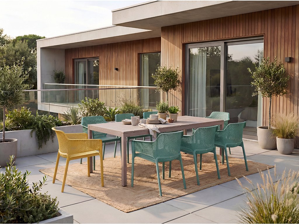 💡 TIP: Kombinujte viac farieb a stohujte stoličky NET, aby ste ušetrili miesto a vytvorili štýlové sedenie pre viac hostí – ideálne pre terasy, balkóny alebo kaviarne.