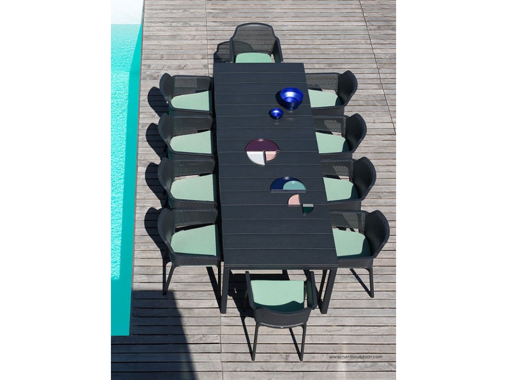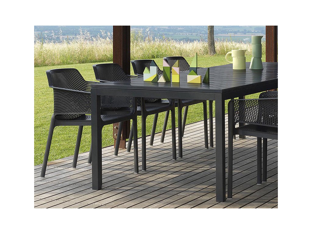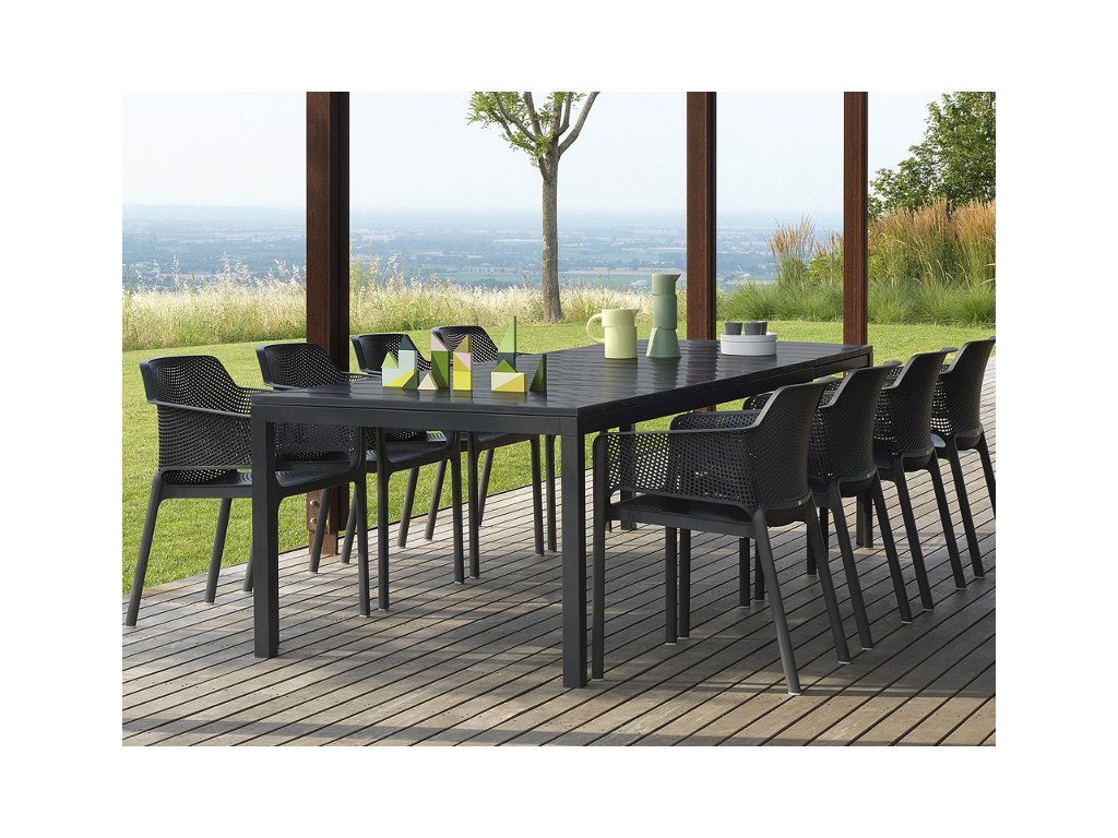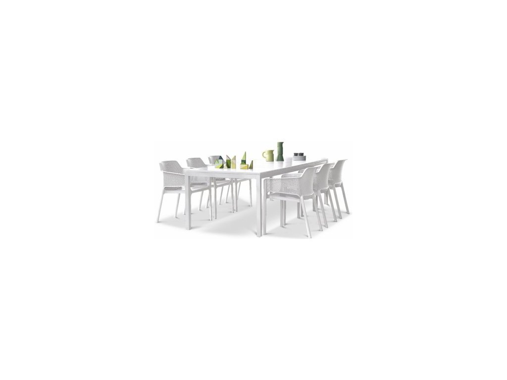 Moderná záhradná súprava NET zažiari na každej terase. Stôl má výsuv pre predĺženie stolovej dosky až na 280cm. Stabilitu stola zabezpečujú hliníkové nohy. Stoličky sú stohovateľné. Dostupné v troch farbách.