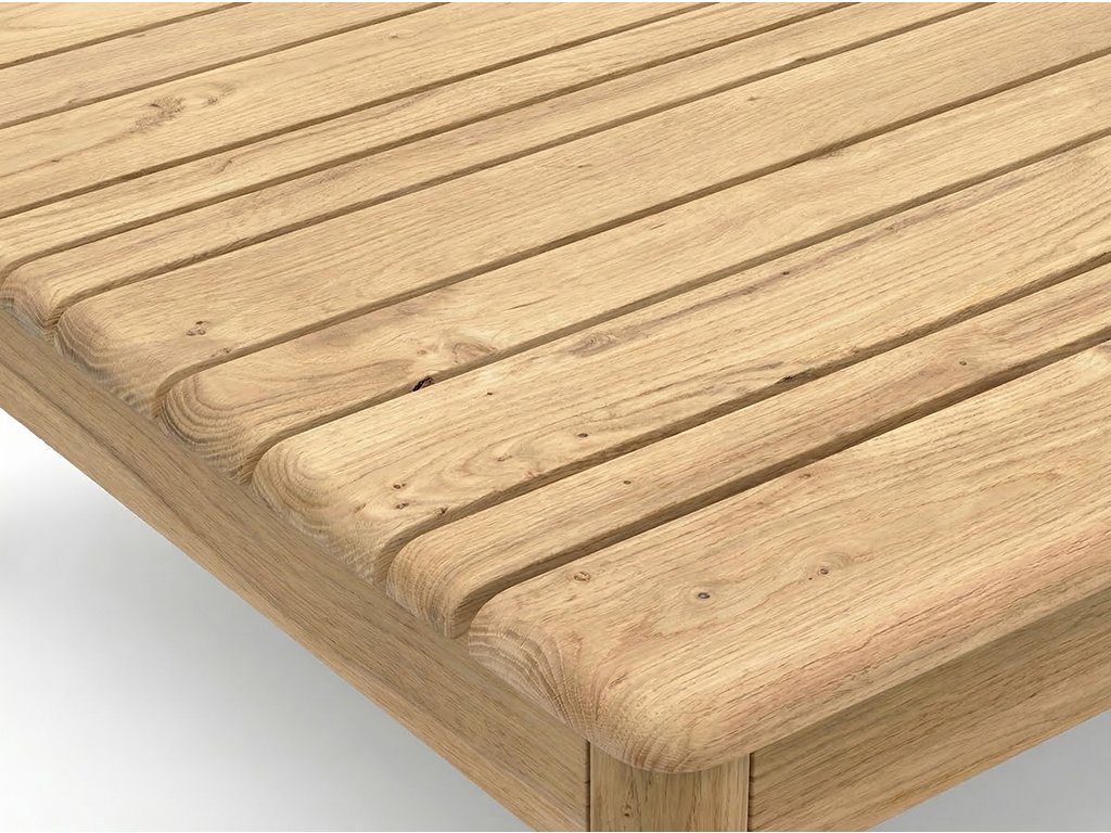 Jeho robustná konštrukcia zabezpečuje stabilitu, zatiaľ čo čisté línie a jemné lamely dodávajú stolíku vizuálnu ľahkosť a sofistikovaný vzhľad. Stolík je ideálny pre podávanie nápojov, drobné občerstvenie alebo dekorácie a stane sa stredobodom vašej relaxačnej zóny na terase, v záhrade či pri bazéne.