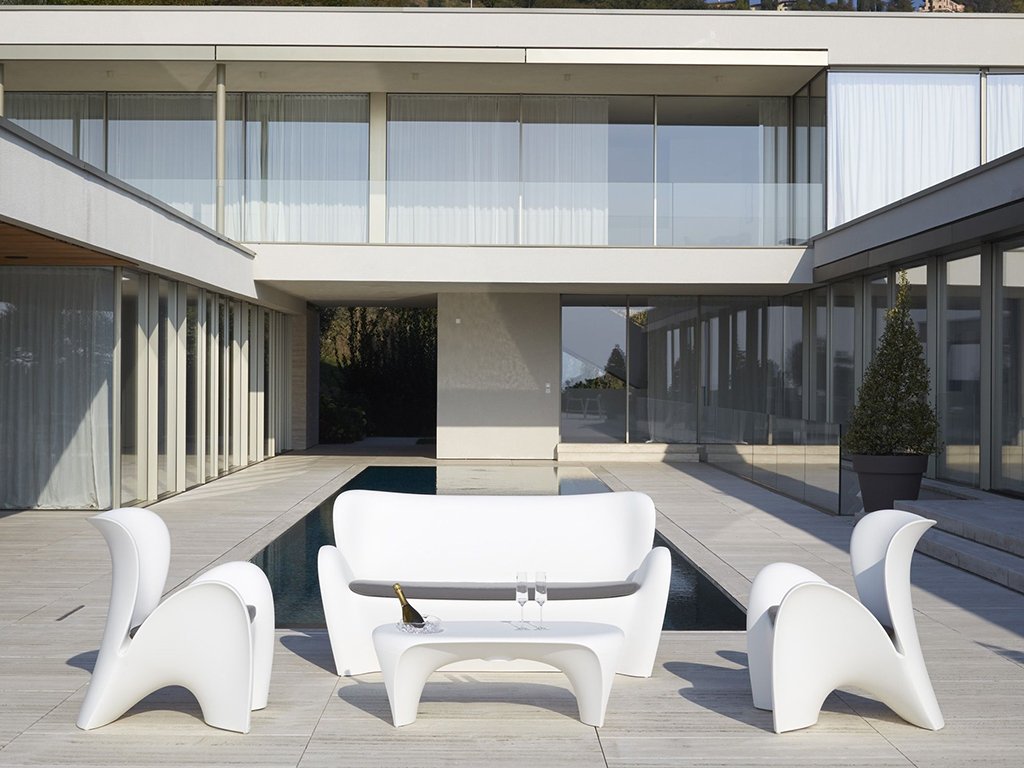 Kvetinový svet inšpiroval túto novú líniu stoličiek Lily od talianských dizajnérov. Jeho štruktúra môže byť opísaná tak, že má dynamické a vlnité tvary, ktoré boli navrhnuté, aby poskytovali život a energiu neformálnym a priateľským priestorom. Zdá sa, že jednoduché postavy ožívajú a prirodzene sa pretvárajú do tvarov, ktoré nám pripomínajú rastliny alebo kvety, pri zachovaní ich ergonomických vlastností a úrovne pohodlia. Lavica Lily Je navrhnutá s dôrazom na pružnosť a odolnosť. Odoláva teplotám v rozmedzí od +60° do -20° Celzia.