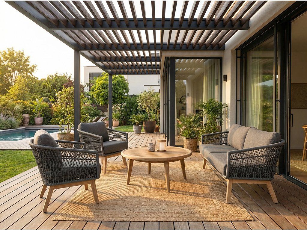 Produkty sú navrhnuté pre život v exteriéri – pevné konštrukcie, kvalitné materiály, UV-stabilné poťahy a dlhotrvajúce povrchové úpravy.