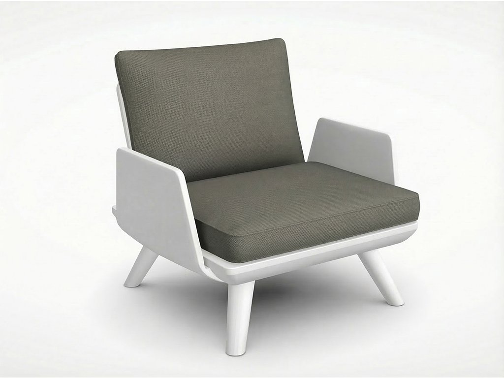 Konštrukcia kresla je vyrobená z inovatívneho materiálu Poleasy®, ktorý je UV stabilný, odolný voči poveternostným vplyvom a zároveň ľahko udržiavateľný. Mäkké čalúnenie s outdoorovou textíliou poskytuje vysoký komfort pri oddychu a je vhodné aj pre náročné exteriérové podmienky.